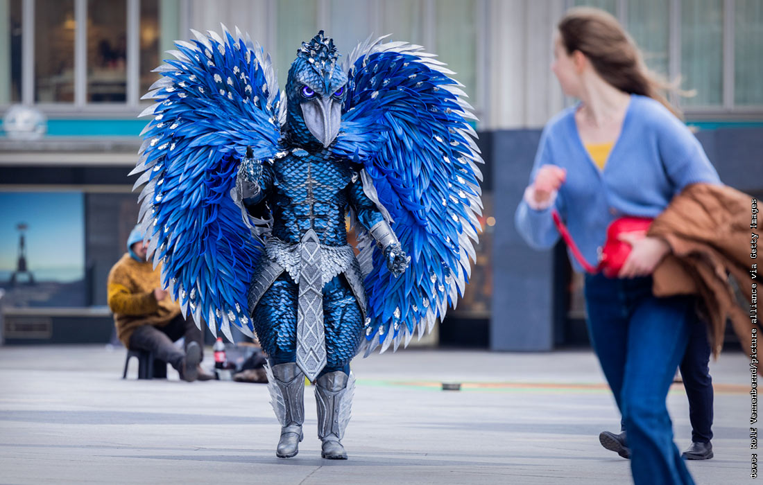 Персонаж "The Shoebill" прогуливается перед Кельнским собором