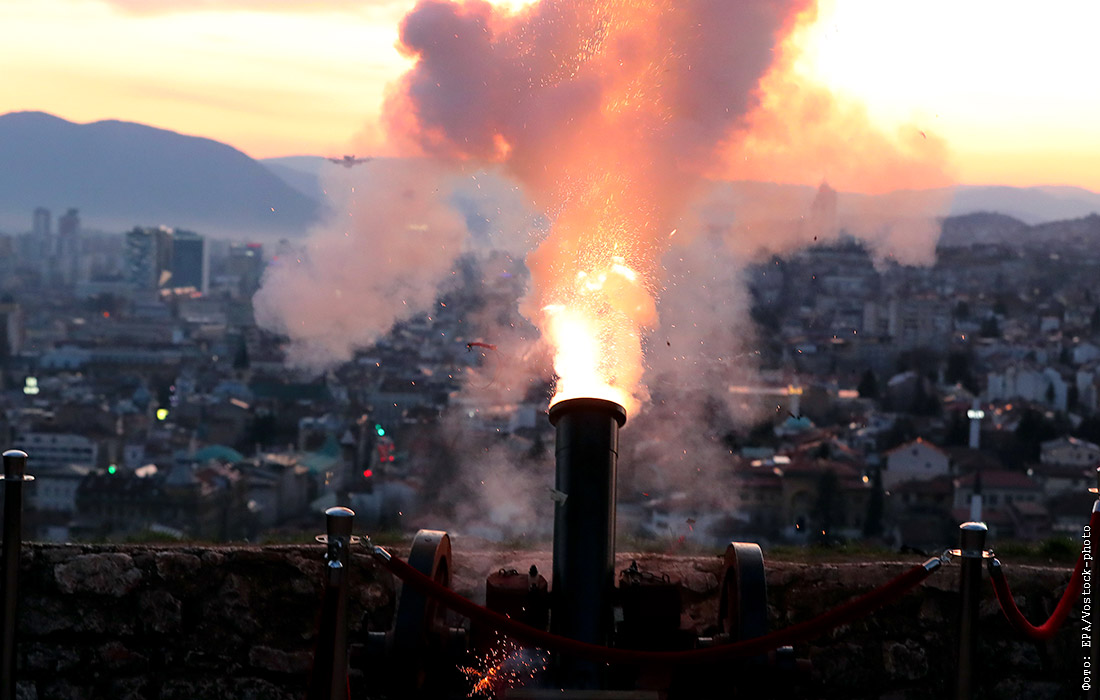 Боснийские мусульмане объявляют о начале месяца Рамадан, стреляя из традиционной пушки в Сараево