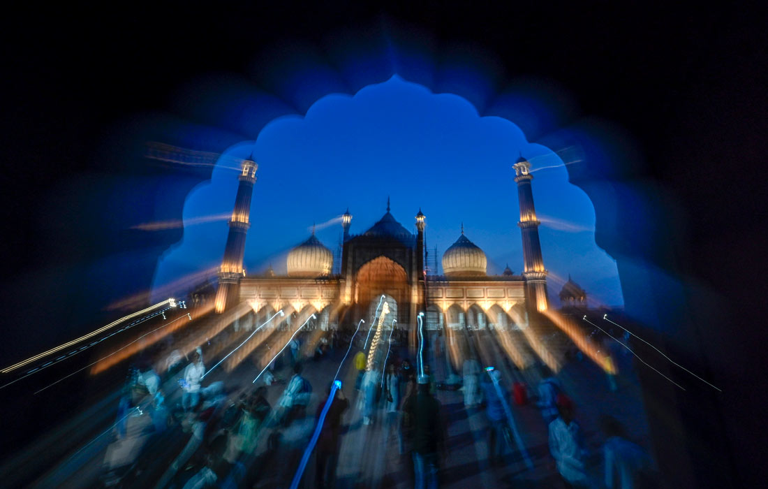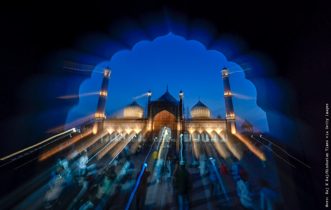 Освещение мечети Джама Масджид во время священного месяца Рамадан в Нью-Дели, Индия