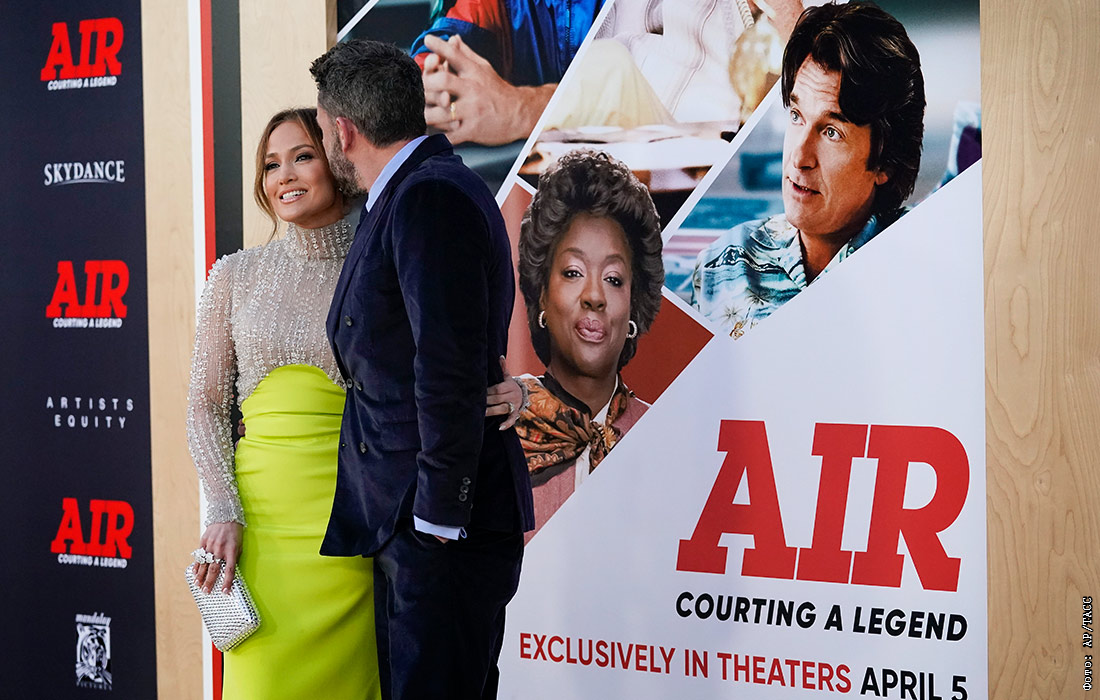 Режиссер Бен Аффлек и певица Дженнифер Лопес на премьере его фильма "Air" в США