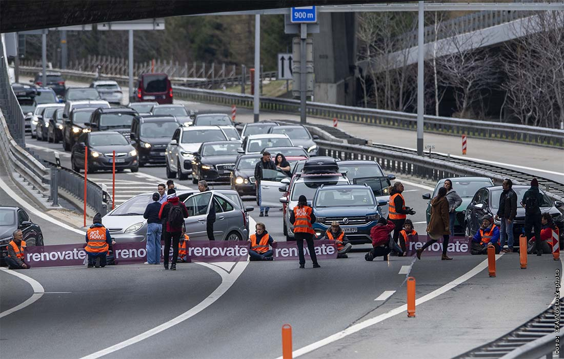 Экоактивисты перекрыли трассу А2 в Швейцарии
