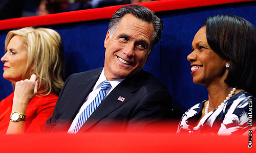 Республиканская партия США официально утвердила Митта Ромни в качестве кандидата в президенты. На фото Митт Ромни с супругой Энн и Кондолиза Райс.