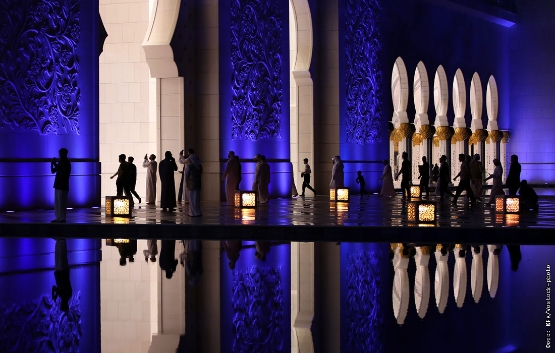 Мусульмане в мечети шейха Зайда в Абу-Даби