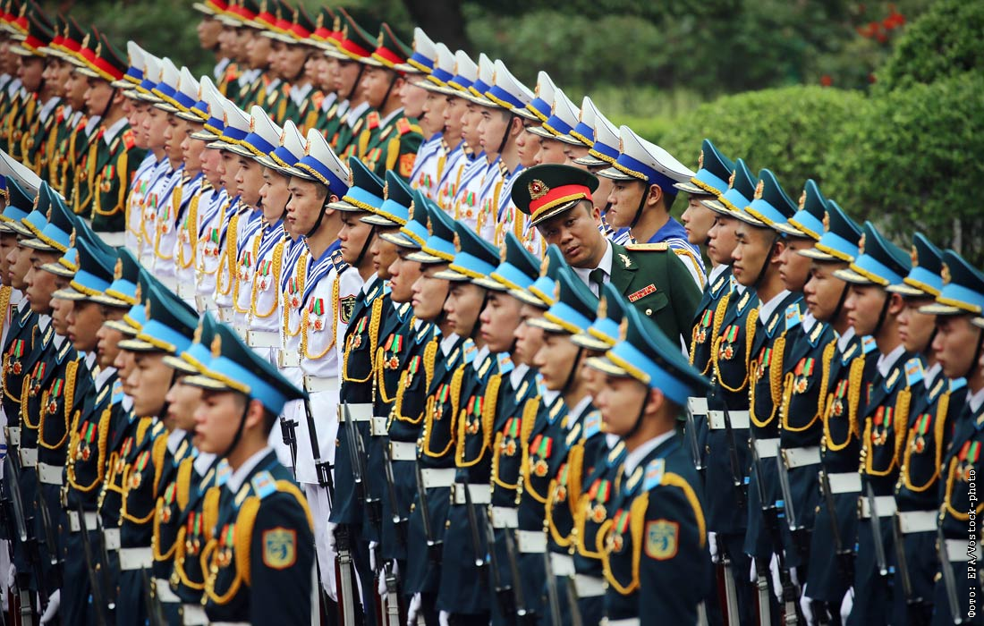 Члены почетного караула готовятся к церемонии встречи премьер-министра Чехии в Ханое, Вьетнам