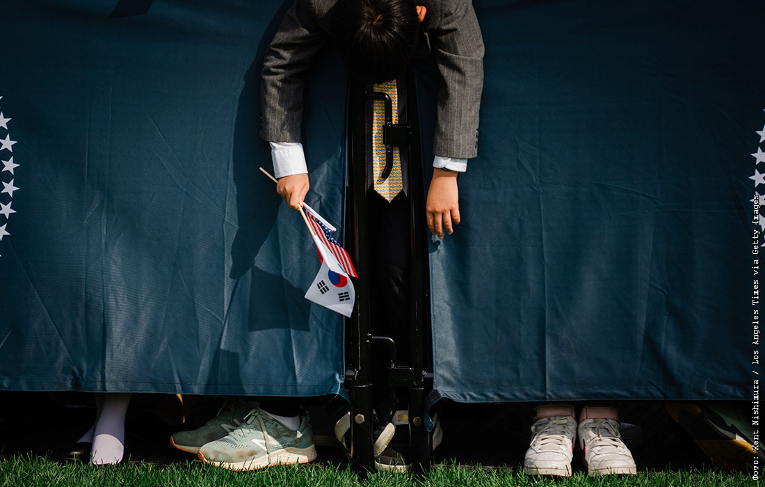 Ожидающие президента Южной Кореи на лужайке Белого дома в США