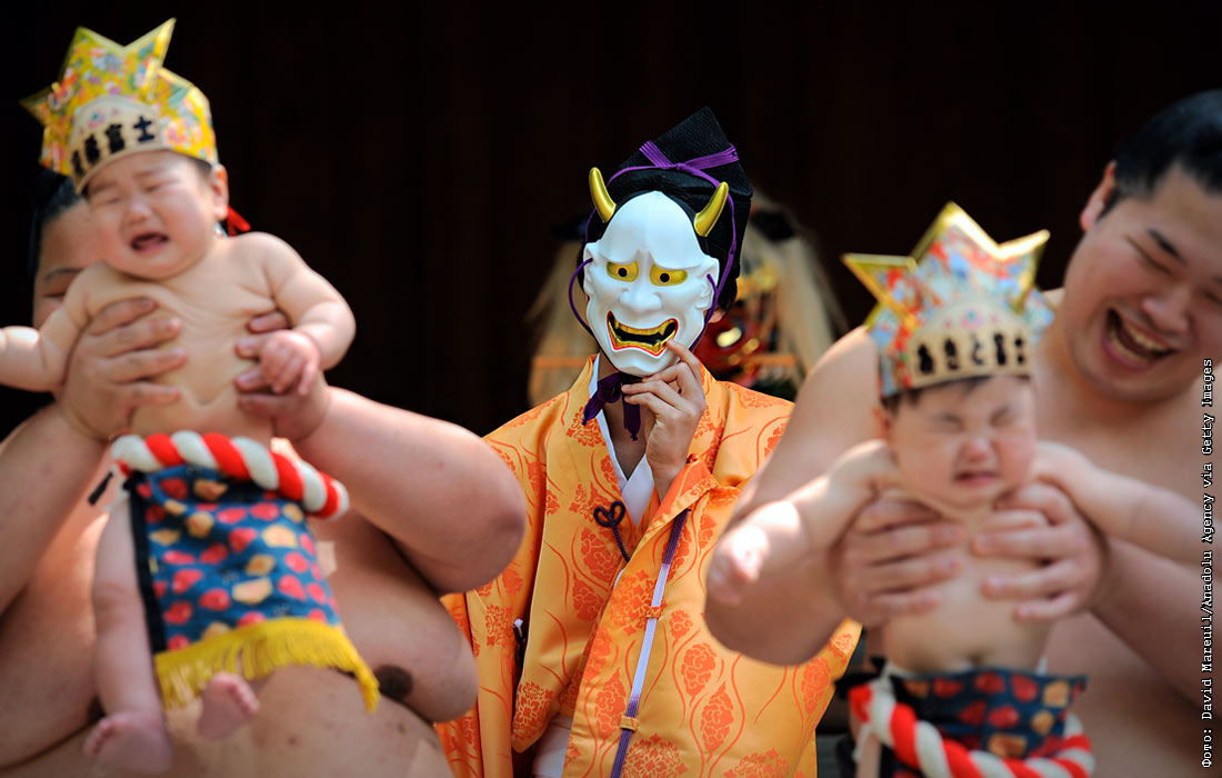 Участники фестиваля плачущих детей в Токио