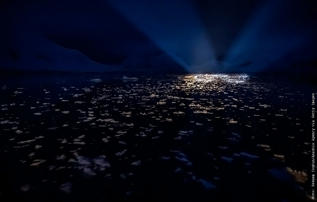 Тающие айсберги Антарктиды видны с острова Хорсшу