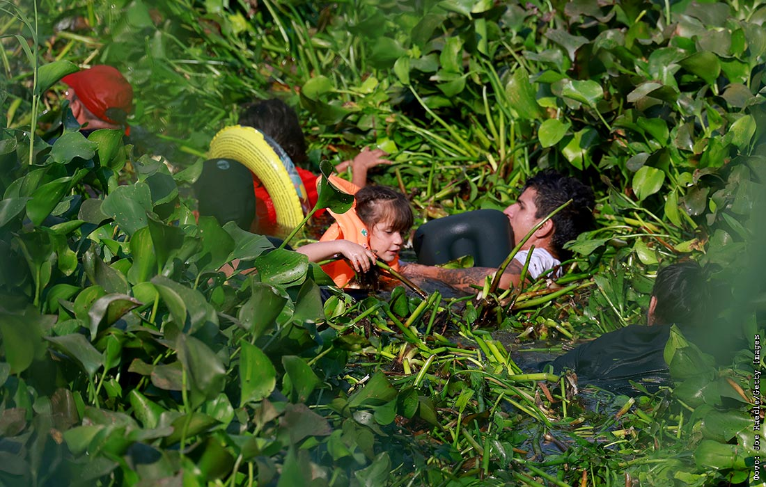 Мигранты пробираются через заросли на реке Рио-Гранде, чтобы въехать в Соединенные Штаты