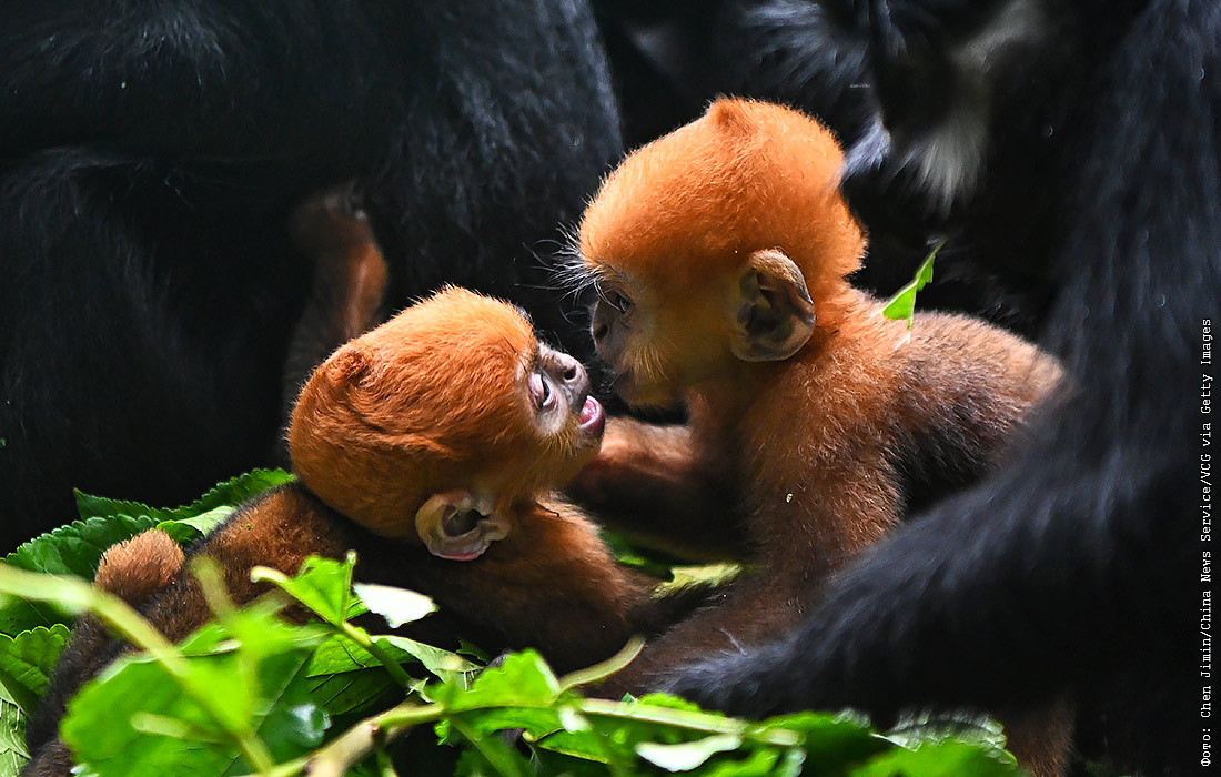 Детеныши лангура в сафари-парке китайского Гуанчжоу