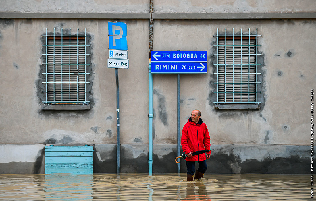 Наводнения из-за проливных дождей на севере Италии в регионе Эмилия-Романья привели к гибели как минимум восьми человек. Тысячи человек эвакуированы, частично прекращено железнодорожное сообщение в некоторых районах.