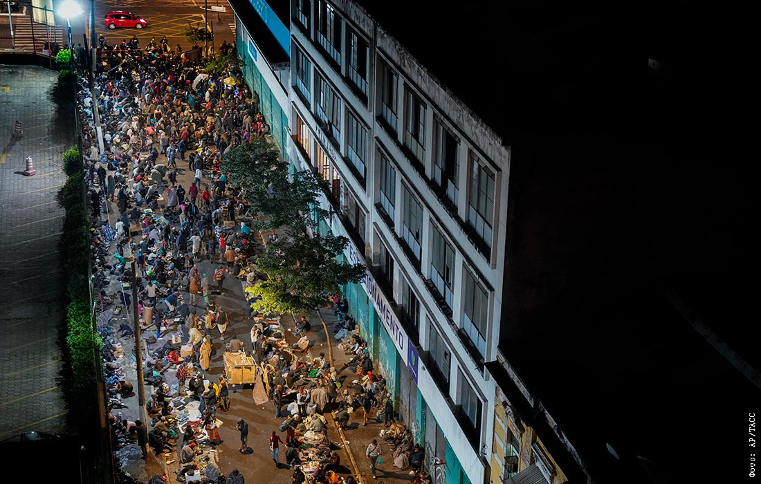 Бездомные в районе Санта-Ифигения в центре бразильского Сан-Паулу