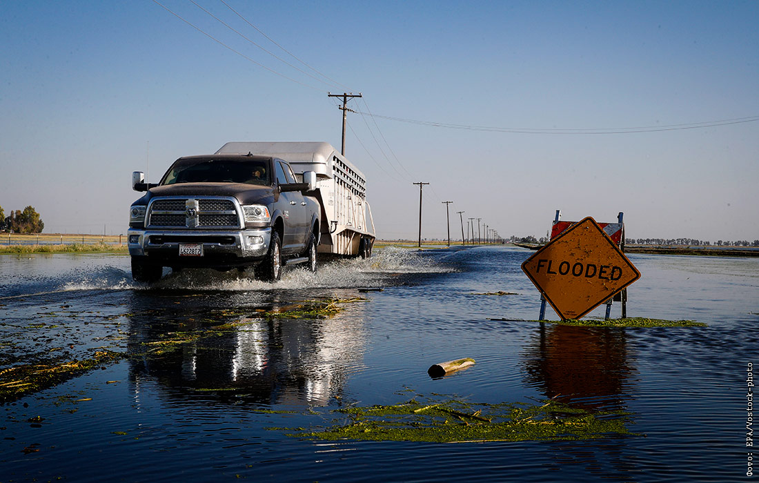 Паводок из-за повышения уровня воды в бассейне озера Туларе, Калифорния