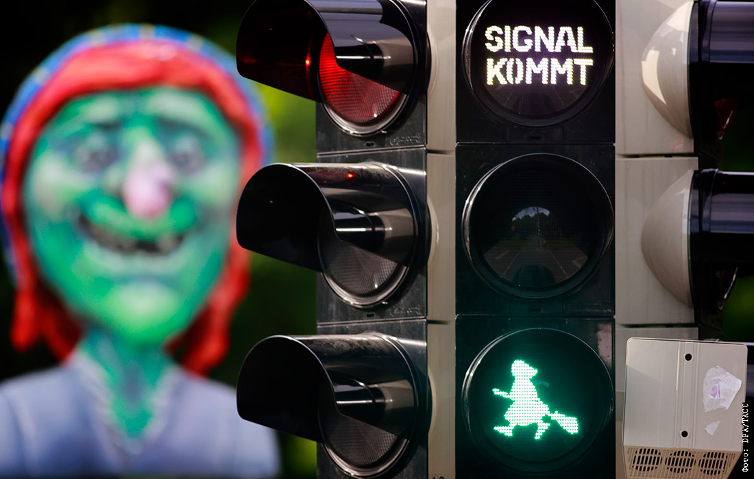 В немецком городе Вернигероде появился светофор с изображением ведьмы и дьявола