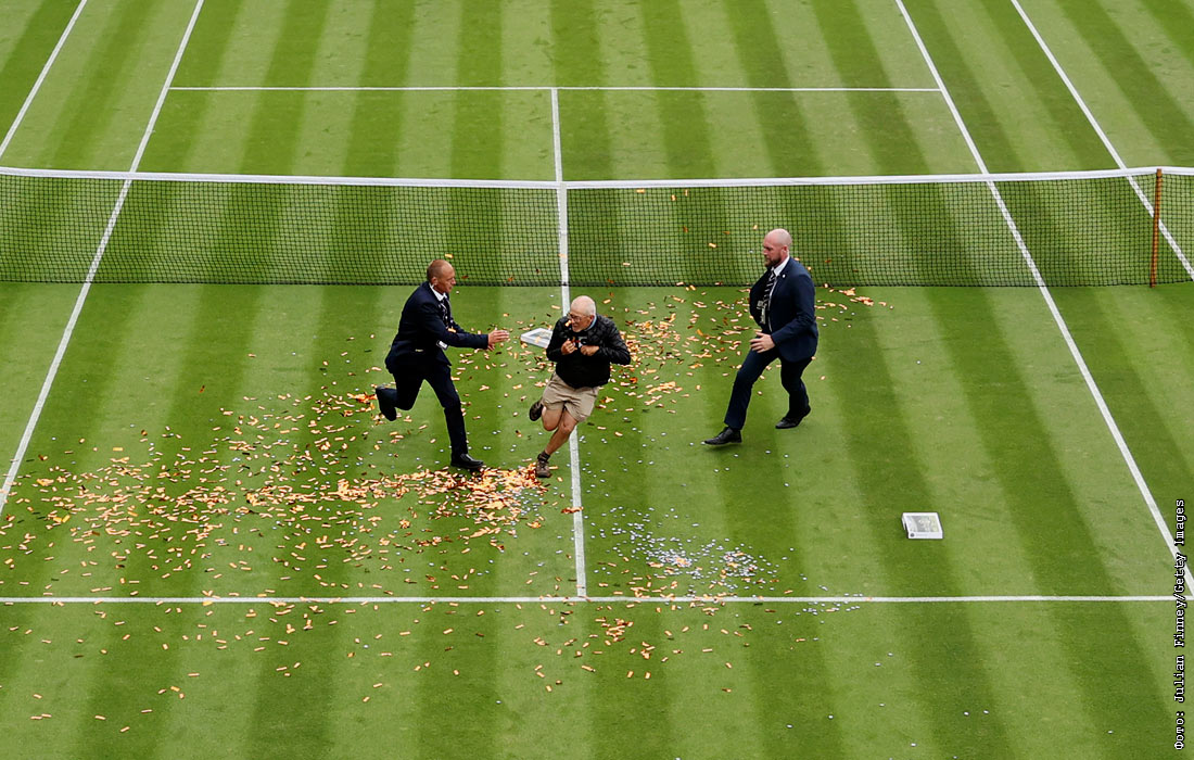 Экоактивисты движения Just Stop Oil сорвали матч первого круга Уимблдона. Протестующий выбежал на на корт и разбросал оранжевое конфетти.