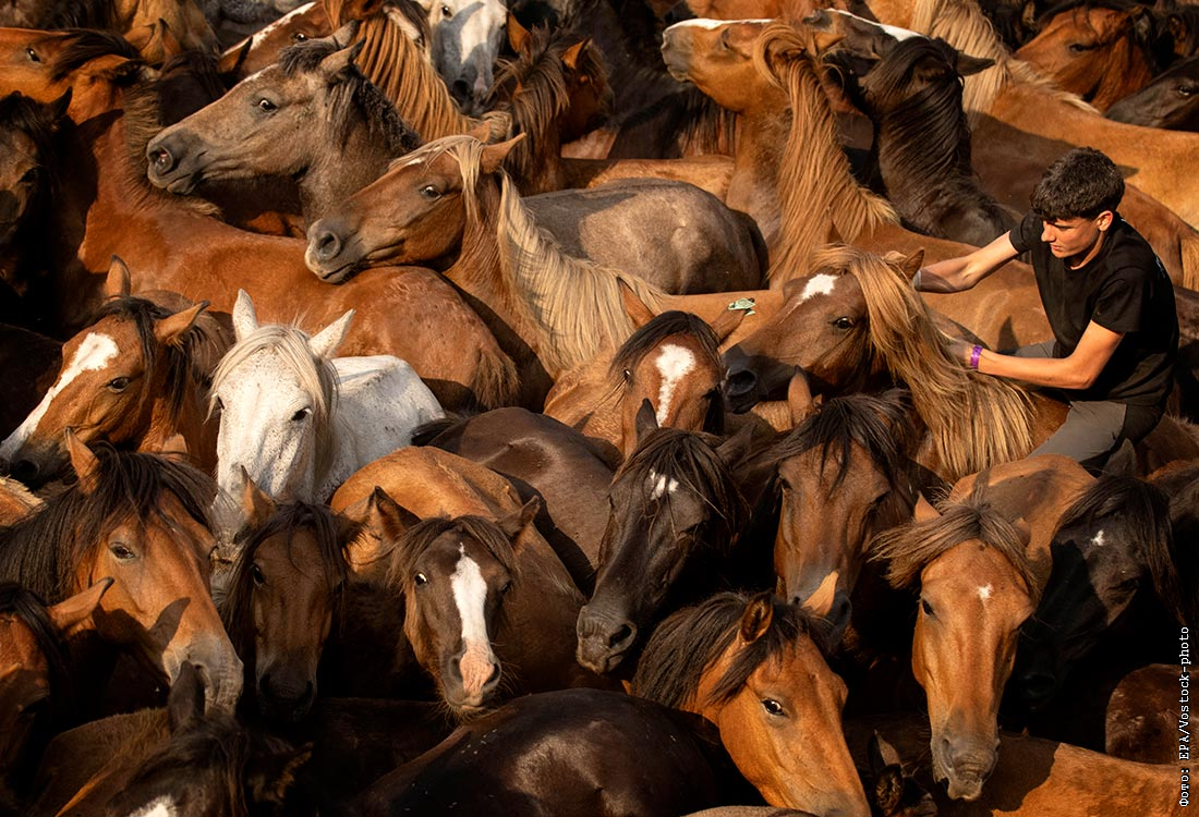 Перегон диких лошадей на ферму в Сабуседо, Испания