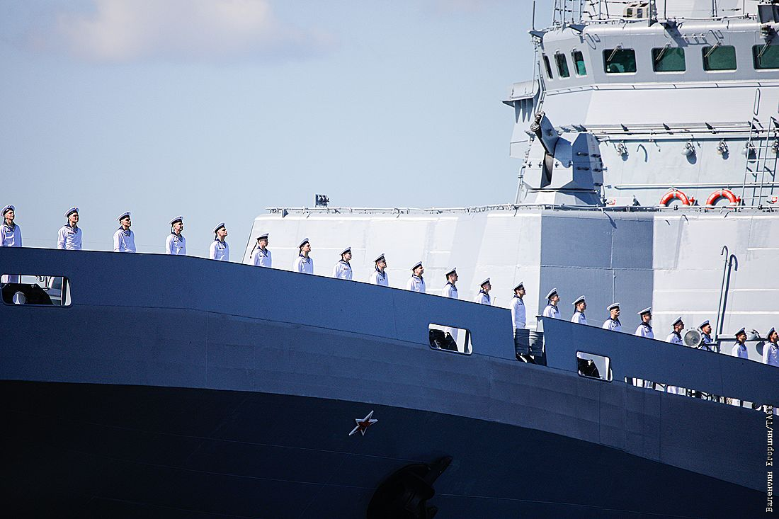 Большой десантный корабль "Иван Грен" во время Главного военно-морского парада в честь Дня Военно-морского флота России