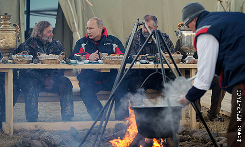 Владимир Путин во время встречи с сотрудниками орнитологической станции "Кушеват" на Ямале. В. Путин принял участие в научном эксперименте в рамках проекта "Полет надежды" по спасению редкого вида журавлей - стерхов, цель которого - показать выращенным в питомнике птицам маршрут перелета.