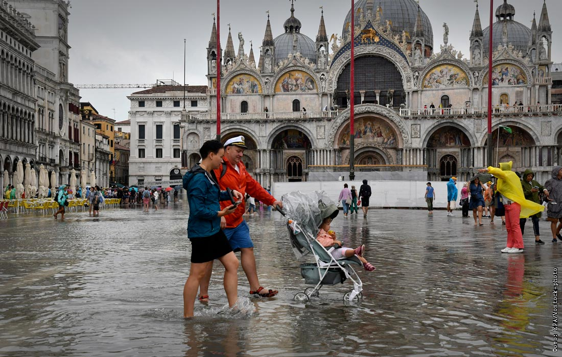 Площадь Сан-Марко в Венеции затоплена из-за приливов