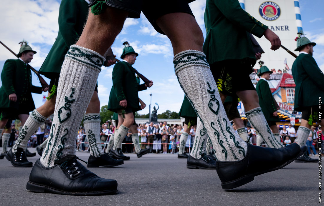 "Октоберфест" открывается традиционным шествием, в котором принимают участие оркестры, стрелковые общества, общества национальных костюмов и около 40 празднично украшенных упряжек