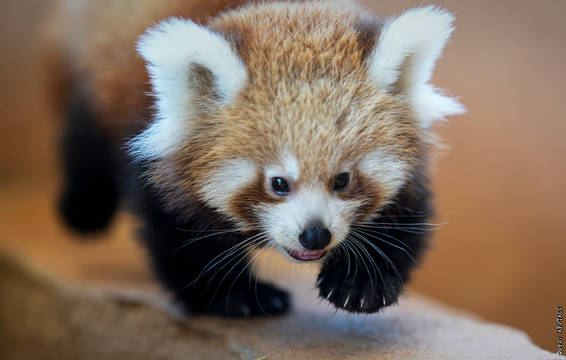 Двухмесячный детеныш красной панды в зоологическом парке в Афинах