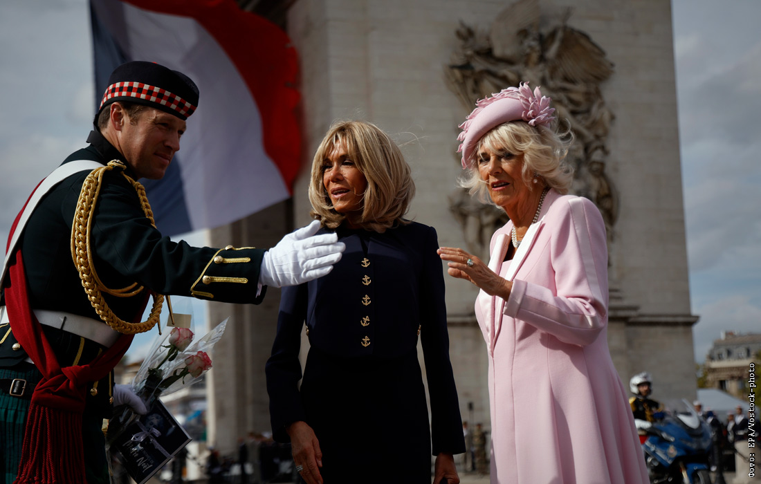Король Великобритании Карл III и королева-консорт Камилла прибыли во Францию с трехдневным государственным визитом. На фото: Камилла и первая леди Франции Брижит Макрон (справа налево).