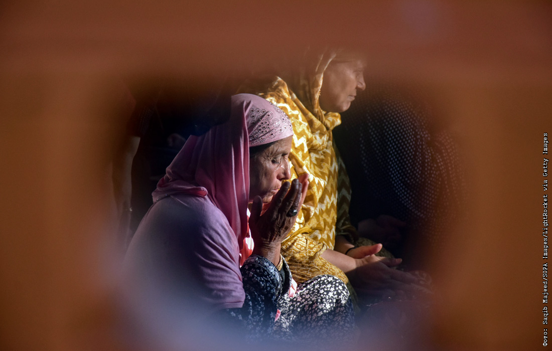 Кашмирская мусульманка молится в храме Шринагара, Индия
