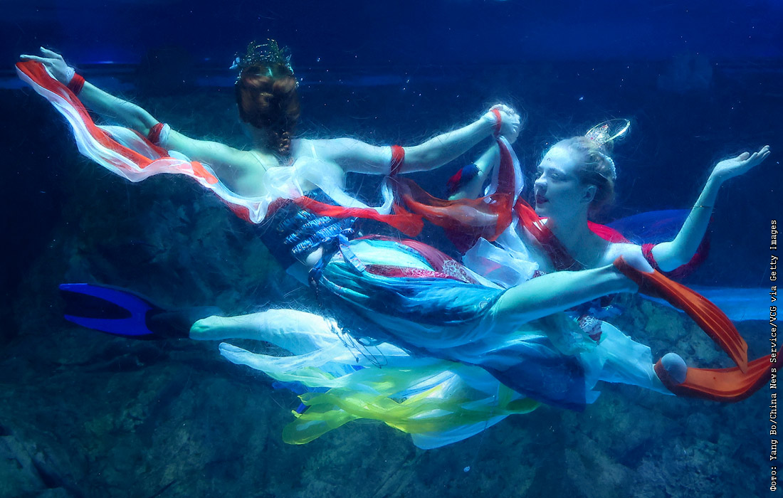 Дайверы исполняют подводный танец в Нанкине, Китай