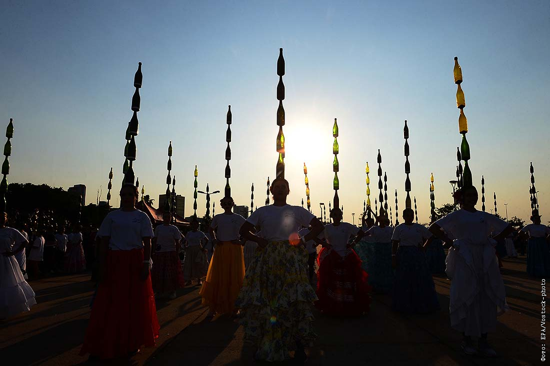 Более 500 женщин-разливщиц станцевали, чтобы установить мировой рекорд в танцах с бутылками на голове на Костанере в Асунсьоне, Парагвай