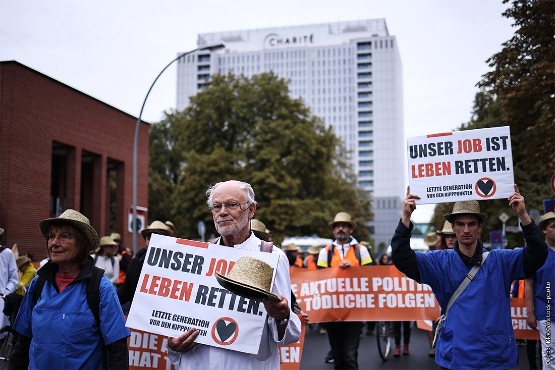 Работники здравоохранения присоединились к климатическими активистам "Последнего поколения" в Берлине и протестуют вместе с ними