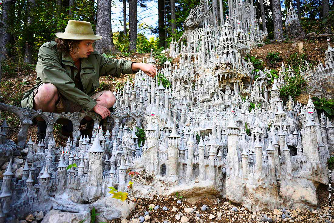 Швейцарский скульптор Франсуа Монту уже сто двадцать дней строит свою скульптуру из клея и цемента на опушке леса в Биере, Швейцария
