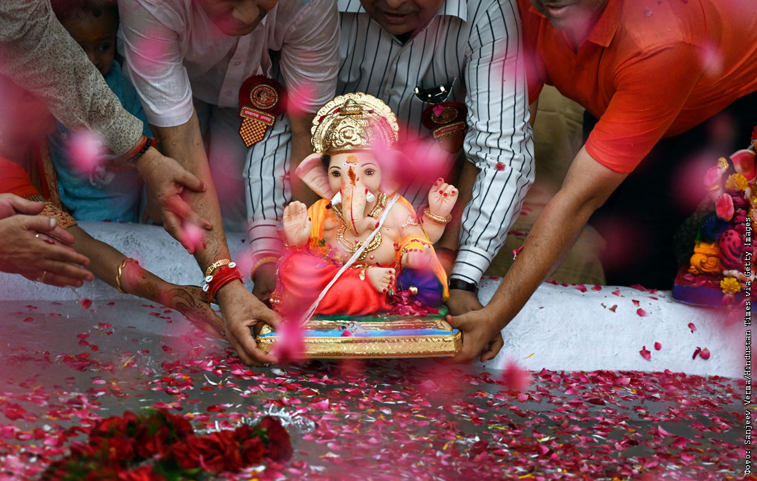 В Индии проходит религиозный праздник Ганеша Чатуртхи, посвященный богу мудрости и благополучия с человеческим телом и головой слона. Во время фестиваля красочные статуи Ганеши традиционно погружают в воду.