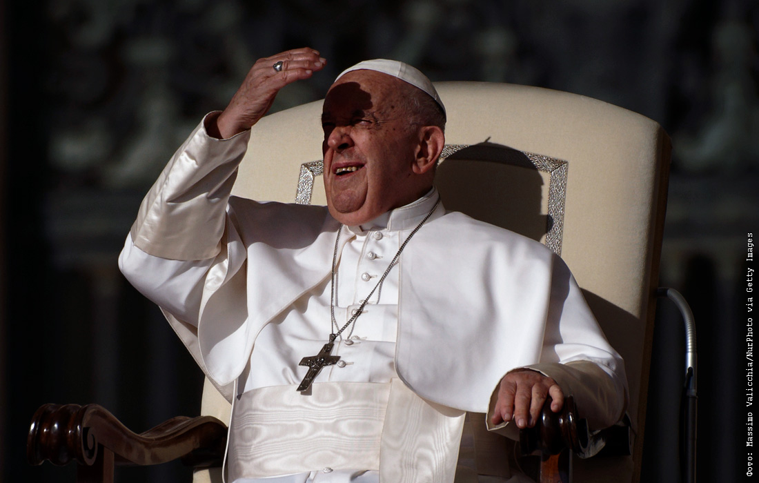 Папа римский Франциск во время еженедельной общей аудиенции на площади Святого Петра в Ватикане