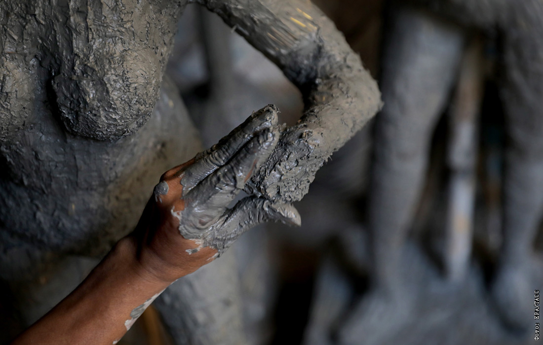 Подготовка к индуистскому празднику в Калькутте, Индия