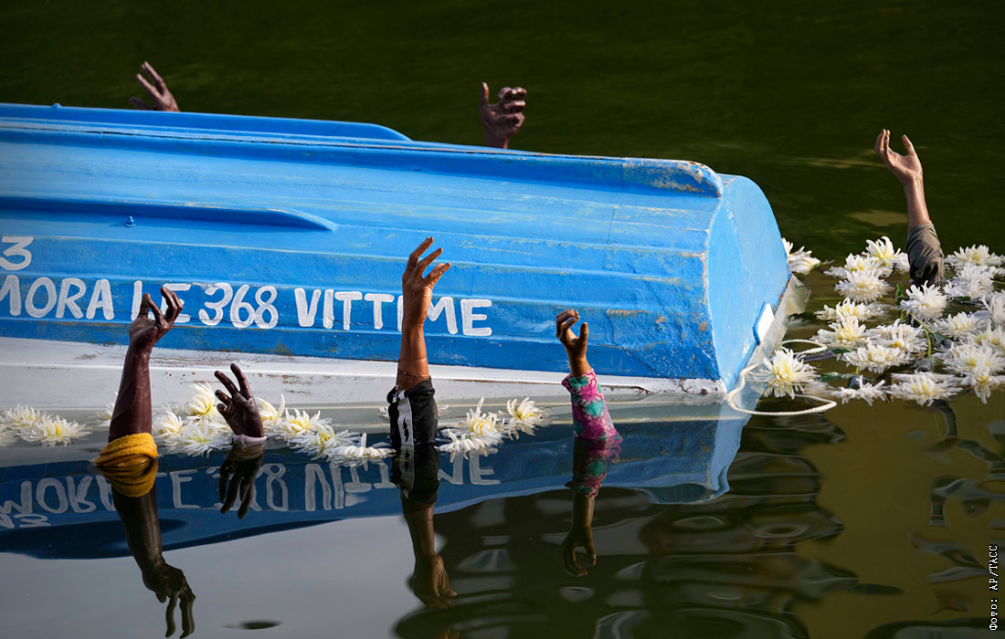 Инсталляция в Милане в память о мигрантах, погибших после крушения судна у острова Лампедуза в 2013 году