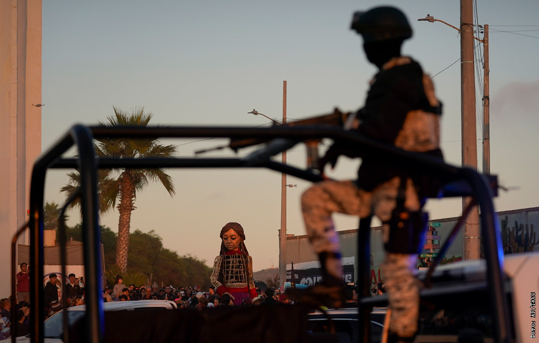Символизирующая девочку-беженку 3,5-метровая марионетка "Маленькая Амаль" на границе США и Мексики