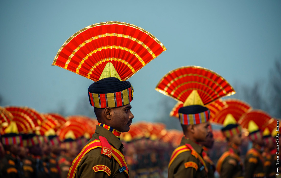 Новобранцы индийских пограничных сил безопасности во время церемонии выпускного парада в Хумхаме