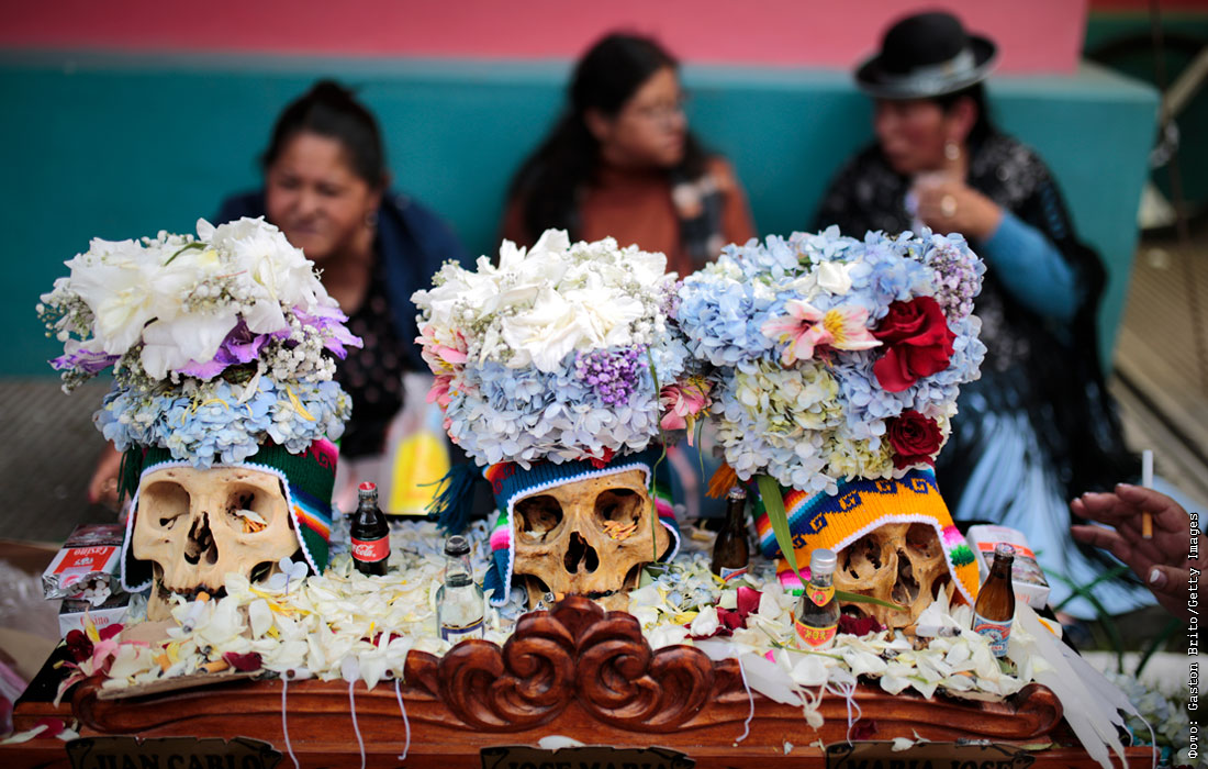 В Боливии прошел День Черепов. В этот день жители страны устраивают шествие с останками своих умерших предков, украшая их цветами и вещами, которые они любили носить при жизни.