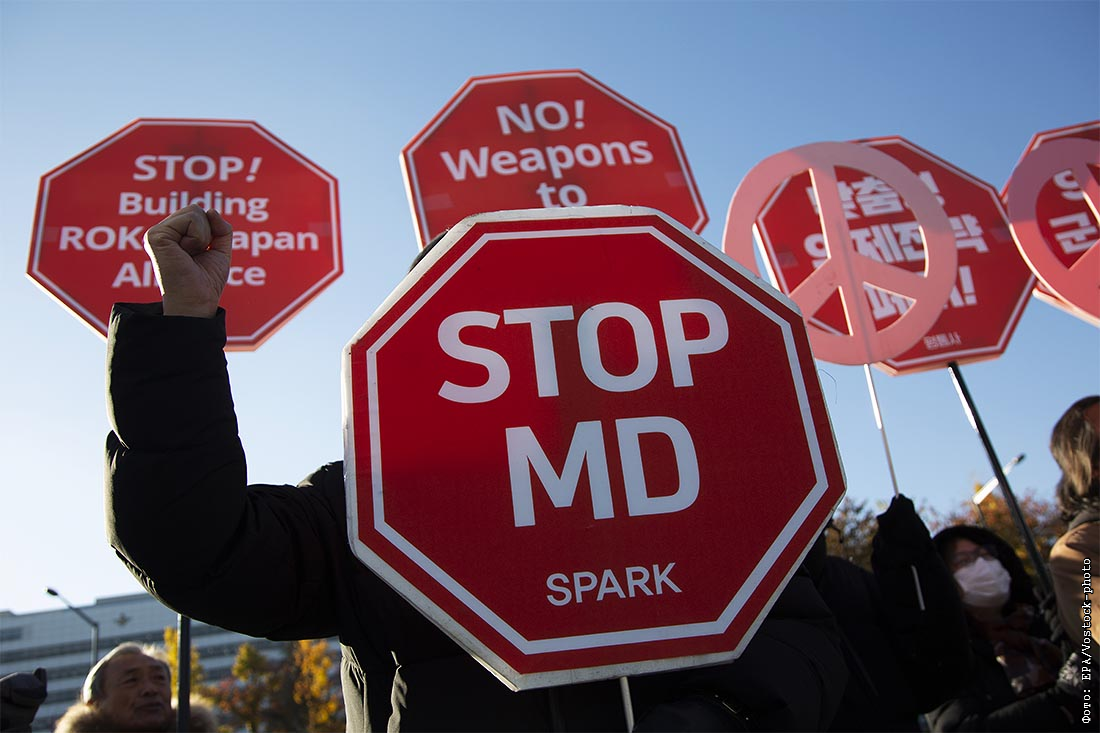 Протест против визита министра обороны США Ллойда Дж. Остина в Сеул
