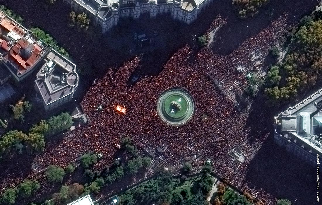 Протестующих против амнистии для каталонских политиков в Мадриде так много, что их видно даже из космоса