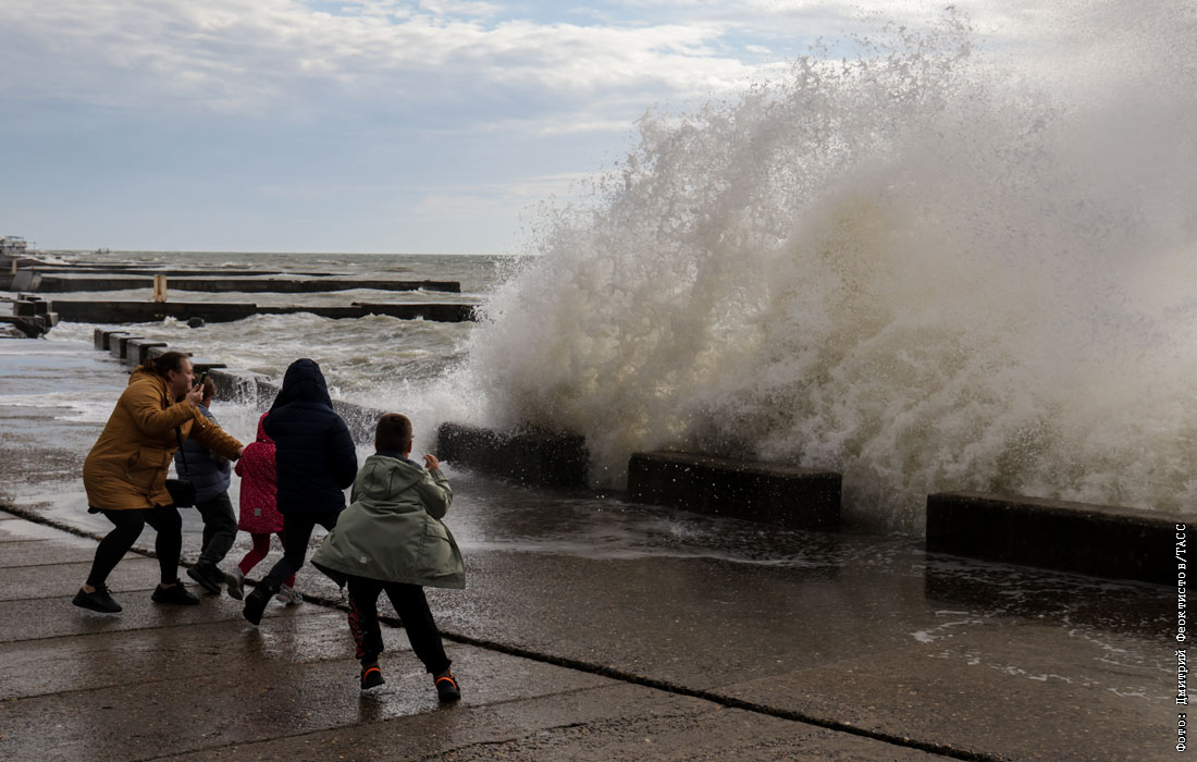 Шторм с ураганным ветром порывами до 40 м/с обрушился на Черноморское побережье России вечером 26 ноября