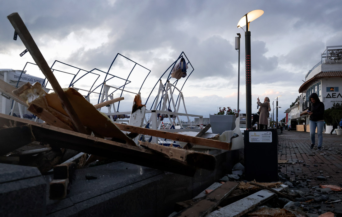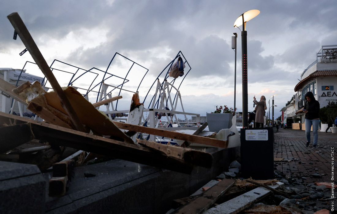 Шторм с ураганным ветром порывами до 40 м/с обрушился на Черноморское побережье России вечером 26 ноября