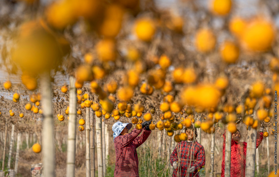 Фермеры собирают зрелые трихозанты в Хэфэй, Китай