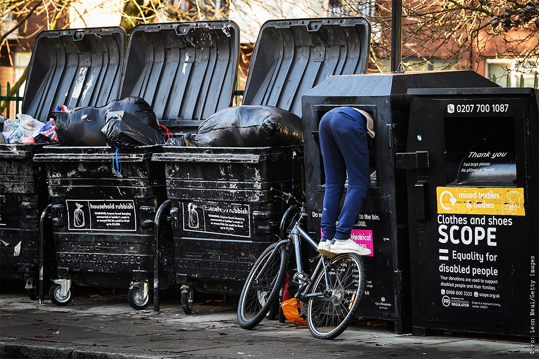 Мужчина роется в баке для отживших свое электроприборов в Англии