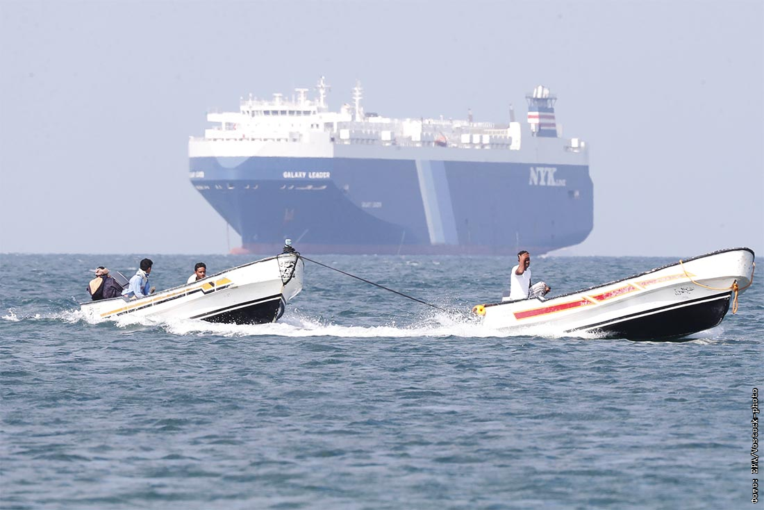 Захваченный хуситами корабль Galaxy Leader стоит на якоре у побережья Йемена