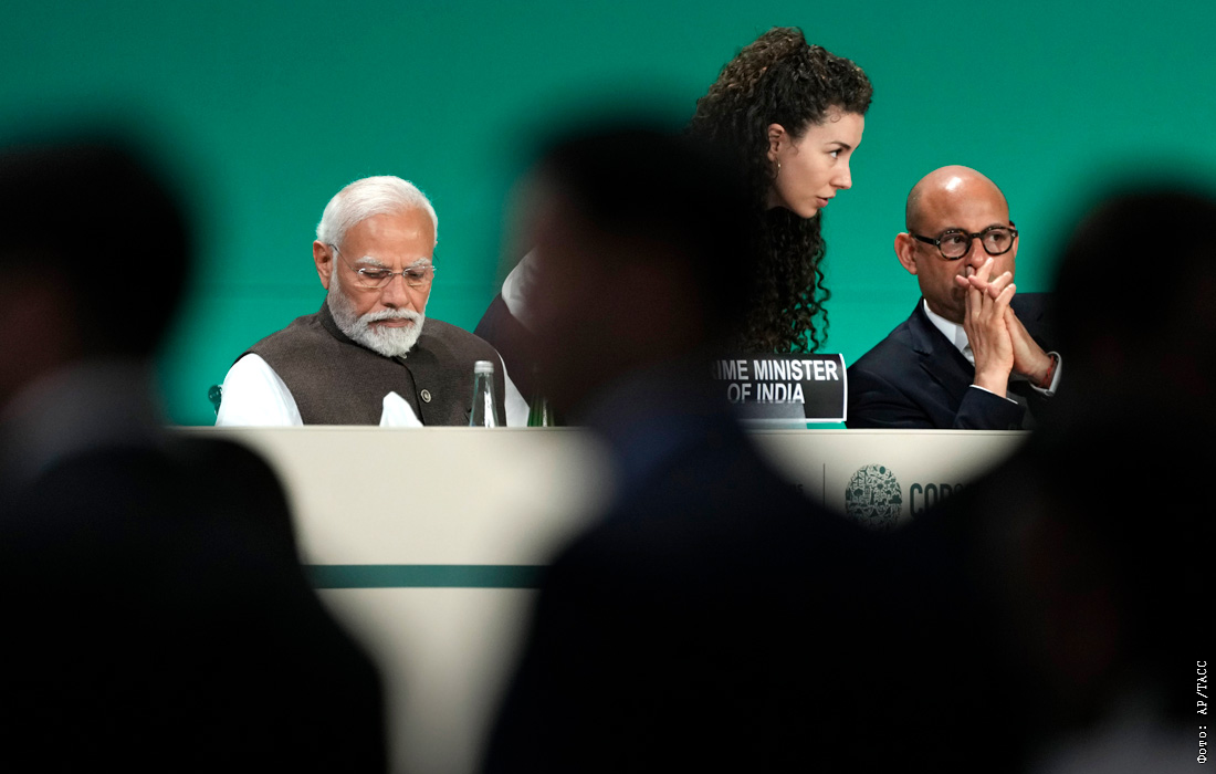 Премьер-министр Индии Нарендра Моди (слева) и глава ООН по вопросам климата Саймон Стилл