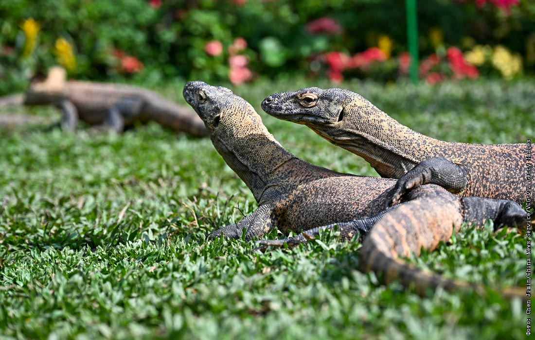 Детеныши комодского варана впервые появились на публике в сафари-парке в Гуанчжоу, Китай