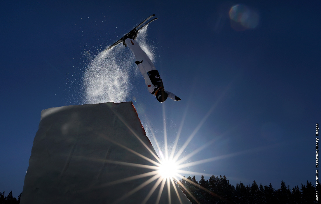 Спортсмен из Китая во время Кубка мира по фристайлу в лыжной акробатике в американском Дир-Вэлли