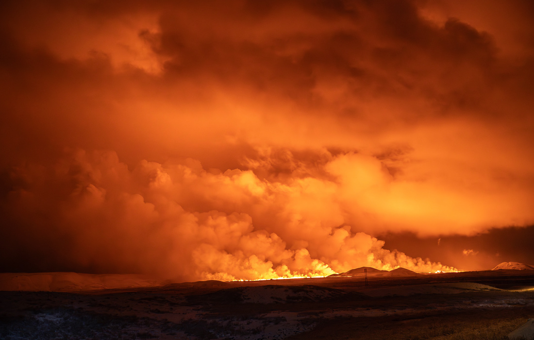 Извержение вулкана началось в ночь на вторник на полуострове Рейкьянес вблизи столицы Рейкьявика