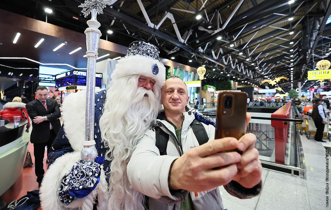 Дед Мороз и Снегурочка поздравили пассажиров в аэропорту Шереметьево