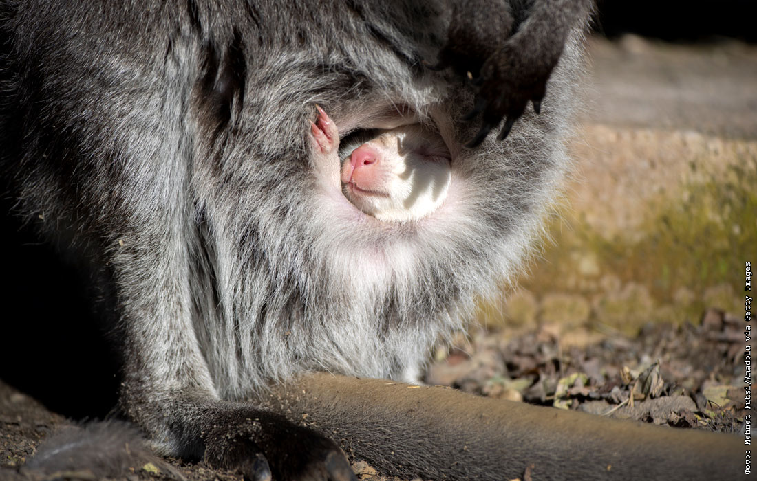 Детеныш кенгуру - альбинос в зоопарке в Анкаре, Турция